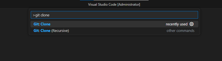 1. VSCode에서 Ctrl + Shift + P 또는 F1 누르고 git clone 검색하고 클릭한다.